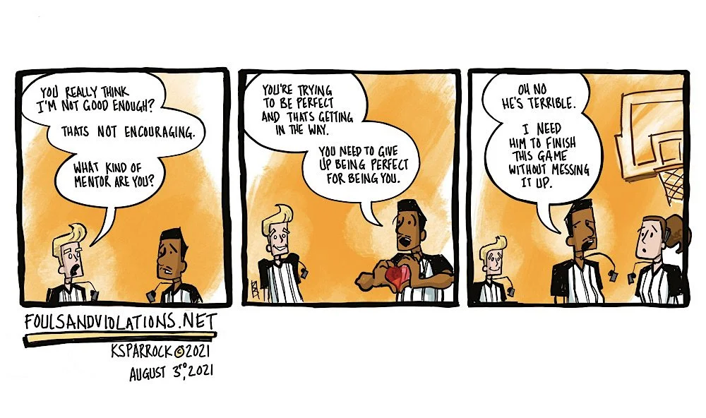 Kevin Sparrock is the artist and creator of Fouls and Violations, Life of a Referee Uncovered. He is a Brooklyn, New York native who has worked as a Graphic Designer and Illustrator for 30 years. He has officiated basketball for over 22 years. He has worked at the High School level, College Division 1 Men’s, College Division 1 Women’s, the NBA Developmental League, and the Woman’s National Basketball Association (WNBA). In 2008, he combined the blessings of two careers and created the first webcomic that chronicles the life of a sports official. Everything in the strip has happened or will happen in the future. Welcome to the referee life. Safe Traveling