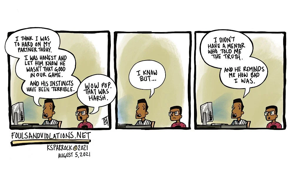 Kevin Sparrock is the artist and creator of Fouls and Violations, Life of a Referee Uncovered. He is a Brooklyn, New York native who has worked as a Graphic Designer and Illustrator for 30 years. He has officiated basketball for over 22 years. He has worked at the High School level, College Division 1 Men’s, College Division 1 Women’s, the NBA Developmental League, and the Woman’s National Basketball Association (WNBA). In 2008, he combined the blessings of two careers and created the first webcomic that chronicles the life of a sports official. Everything in the strip has happened or will happen in the future. Welcome to the referee life. Safe Traveling