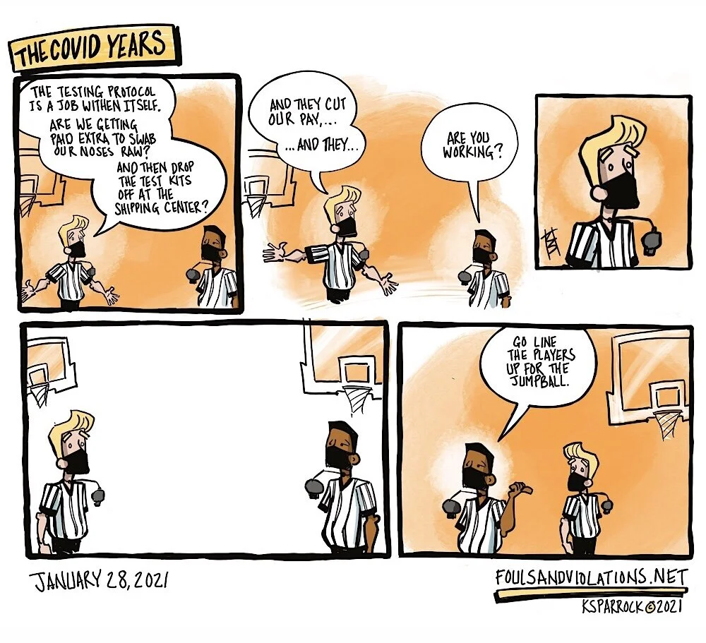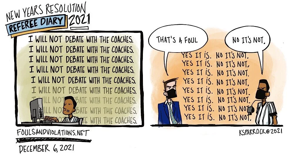 If you started officiating during this COVID year you will come to realize the importance of communication. Supervisors are now strongly recommending that officials wear a mask at all times. This means during live play as you run up and down the court. With a mask on communication with your partners is even more important. You have to adopt an intentional way of communicating. This might mean being slower with your mechanics your signals and your pronunciation. I found myself taking pauses to communicate with my partners. I know people with hearing disabilities are looking at the world saying, “Now you know how I feel”. New beginnings. Be safe, adapt and wear a mask.